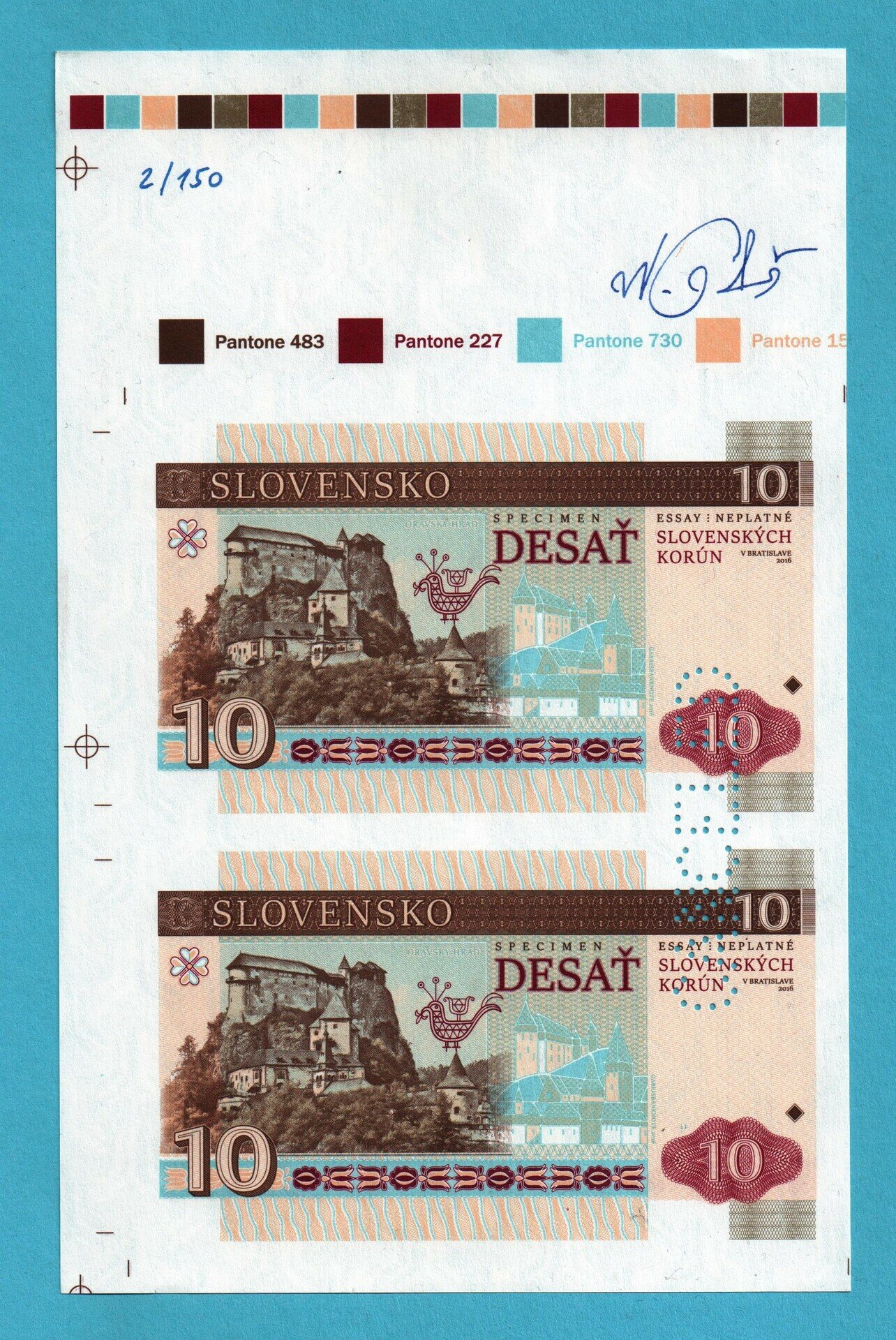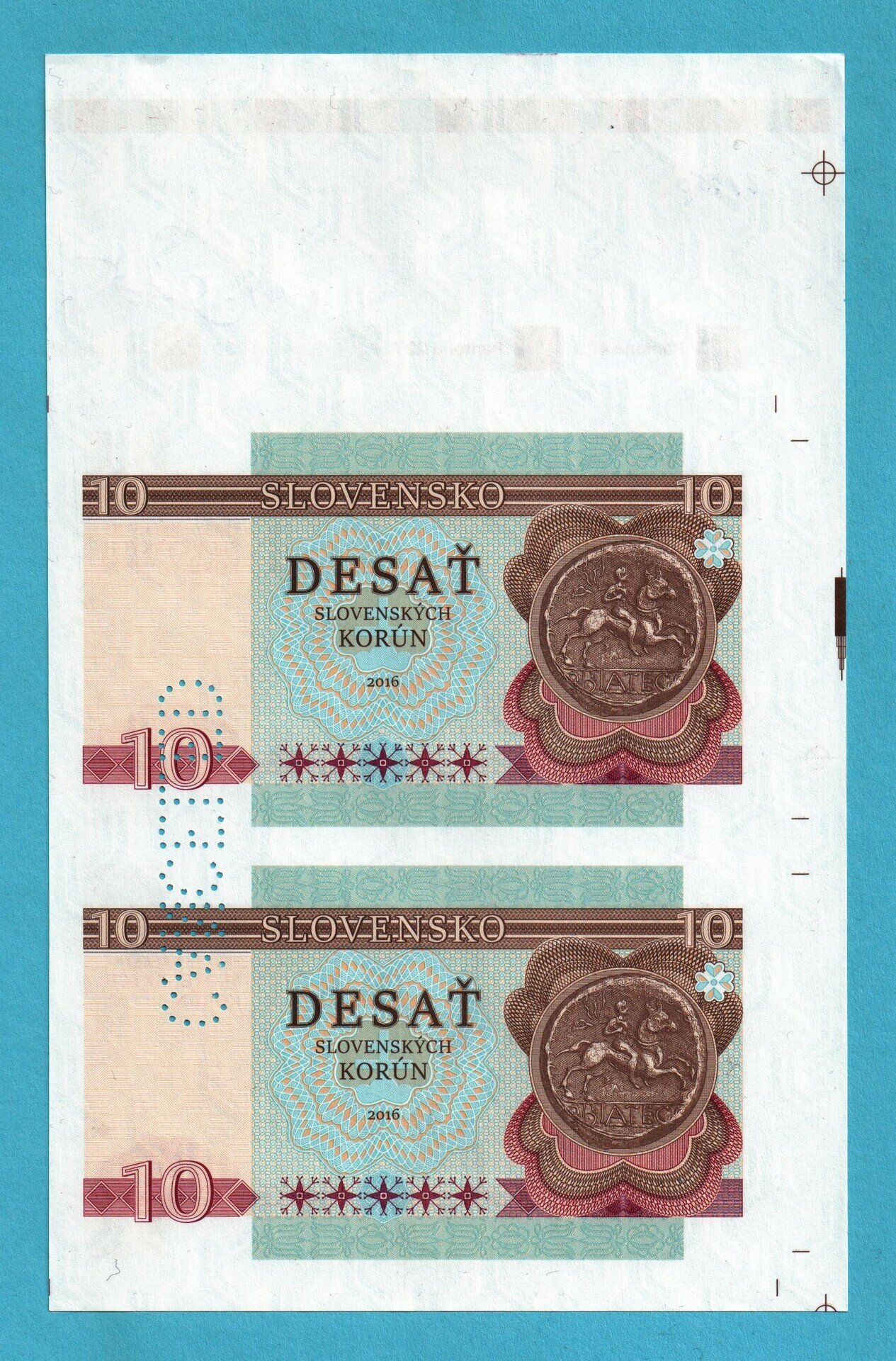 Aršík 10 korún 2016 ručne číslované-perforácia CANCELED s podpisom Mateja Gábriša