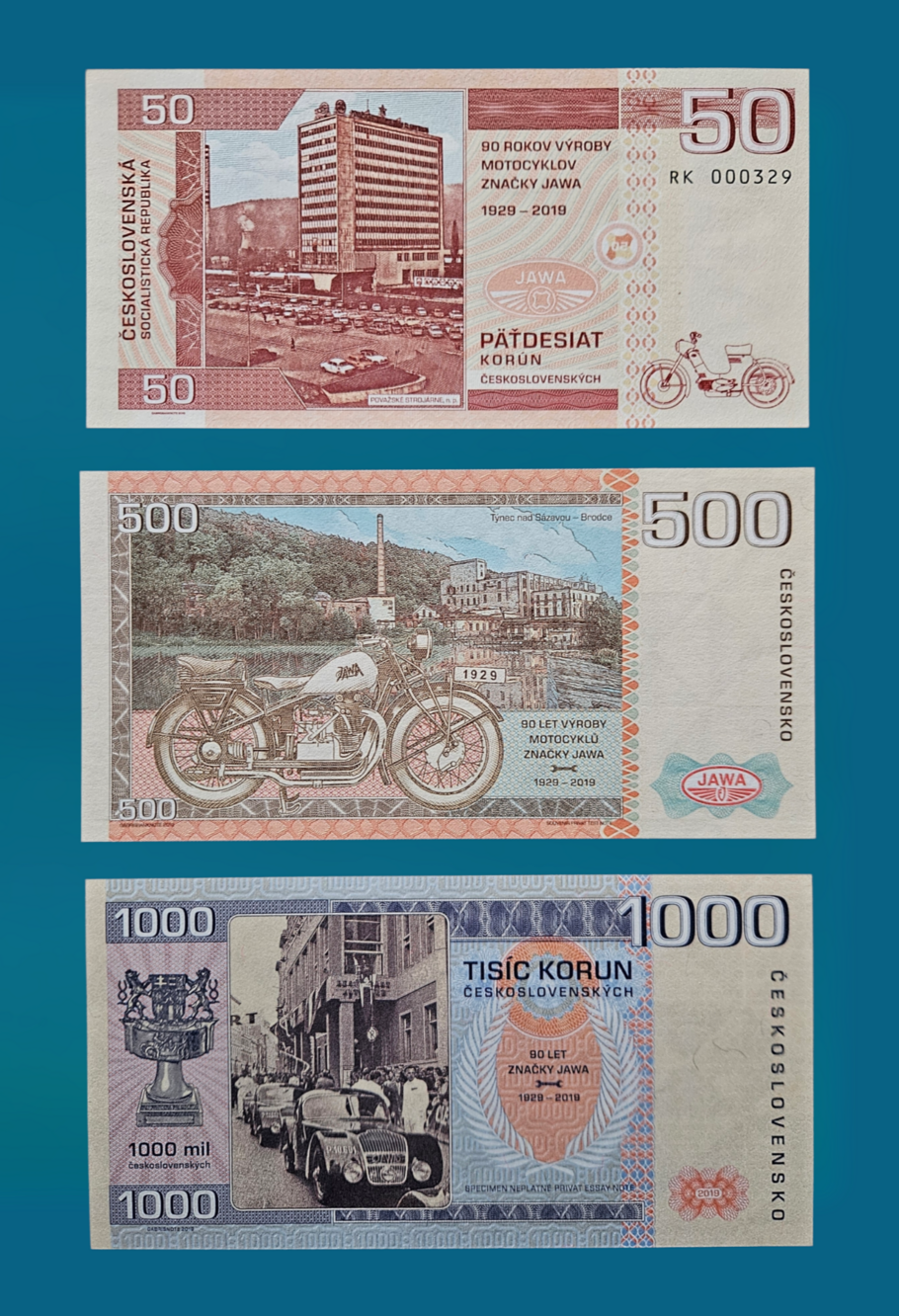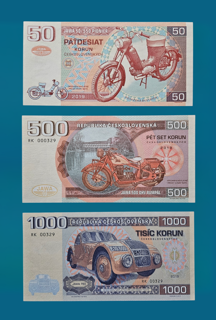 Jawa 750 ktoré bolo vyrobené ako závodné pre závod 1000 mil, Praha - Brno - Bratislava , preto aj nominál 1000, nikdy sa sériovo nevyrábalo. Rozmery (mm): 154 x 76