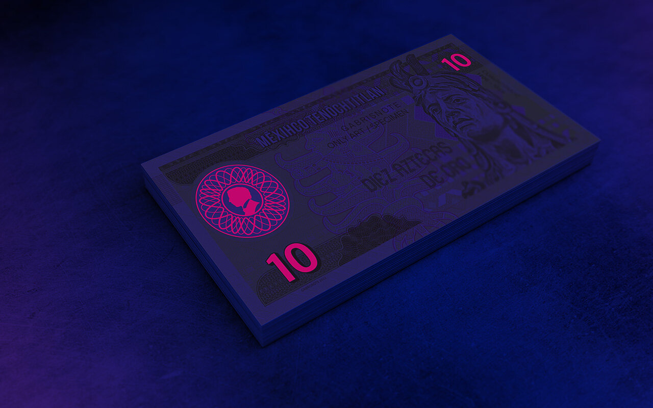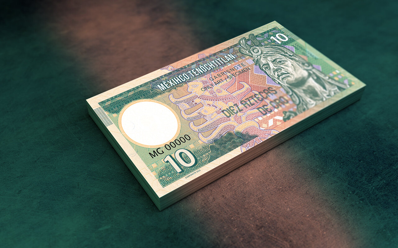 Matej Gábriš o jej vzniku napísal: Minulý rok som sa chystal pripraviť sériu gábrišoviek na tému “zaniknuté civilizácie¨.Pre pracovné vyťaženie som vytvoril iba prvú z nich. Venoval som ju hlavnému mestu aztéckej ríše Tenochtitlan, na mieste ktorého dnes stojí hlavné mesto Mexico. V dobe objavenia mesta Európanmi v 16. storočí malo stotisíc obyvateľov a bolo najväčším mestom amerického kontinentu. Hlavným motívom prednej strany je portrét posledného nezávislého aztéckeho panovníka Cuauhtémoca, ktorý celé obdobie svojho panovania bojoval proti španielskym conquistadorom. Rubovú stranu zdobí reliéf s motívom aztéckych bojovníkov a jednotiacim grafickým prvkom oboch strán je aztécke piktogramové písmo. Aztékovia hovorili jazykom Nahuatl, z ktorého vznikli slová ako čokoláda, chilli, avokádo, ocelot ale aj Mexico. Gábrišovku som spracoval v štýle juhoamerických bankoviek sedemdesiatych rokov