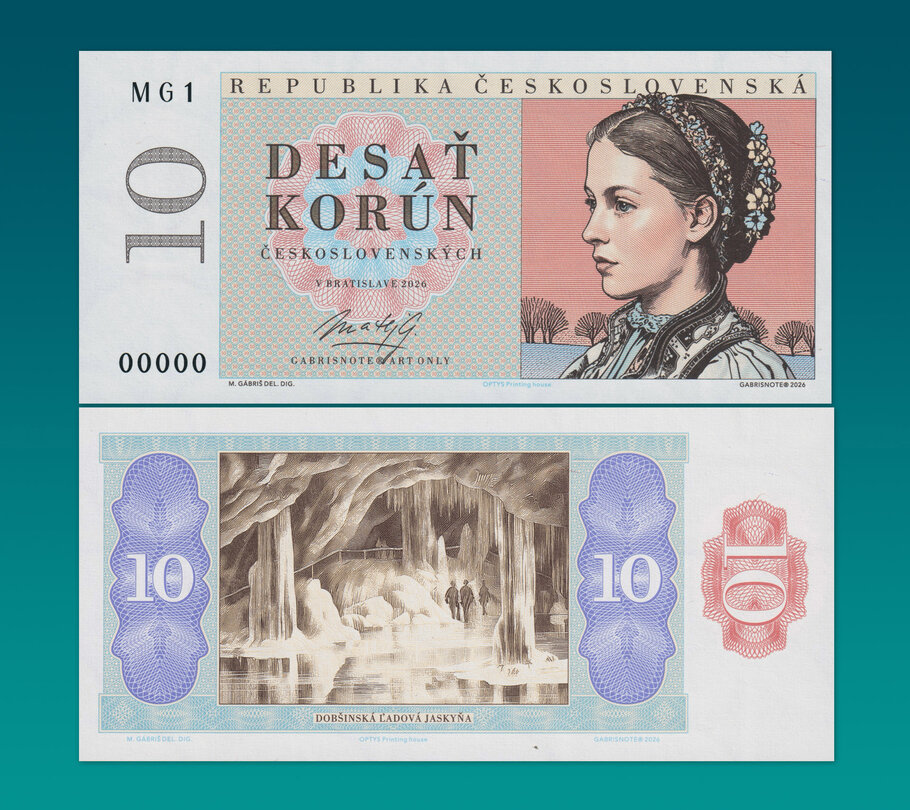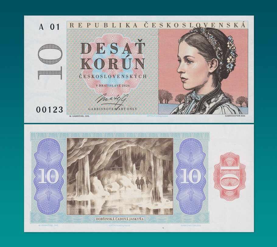 Keď v roku 1949 vyšla bankovka (20 korún československých) navrhnutá Karlom Svolinským, spôsobila v dizajne cenín malú revolúciu. V ére monochromatických emisií priniesla nečakanú farebnú hravosť a poetiku, ktorá nadväzovala na najlepšie tradície Muchu či Švabinského. Rozhodol som sa vzdať hold tomuto velikánovi česko-slovenskej grafiky. Výsledkom môjho snaženia je táto 10-korunáčka, ktorá je oslavou pestrej farebnosti. Averz: Portrét dievčiny je inšpirovaný Svolinského estetikou a ľudovou poetikou. Tentokrát slovenskou. Reverz: Dobšinská ľadová jaskyňa v hnedom pripomínajúca staré pohľadnice. Grafický návrh bol realizovaný v tlačiarni cenín OPTYS. Z môjho pohľadu je unikátny svojou jemnosťou. Mám k nemu zvláštny vzťah.