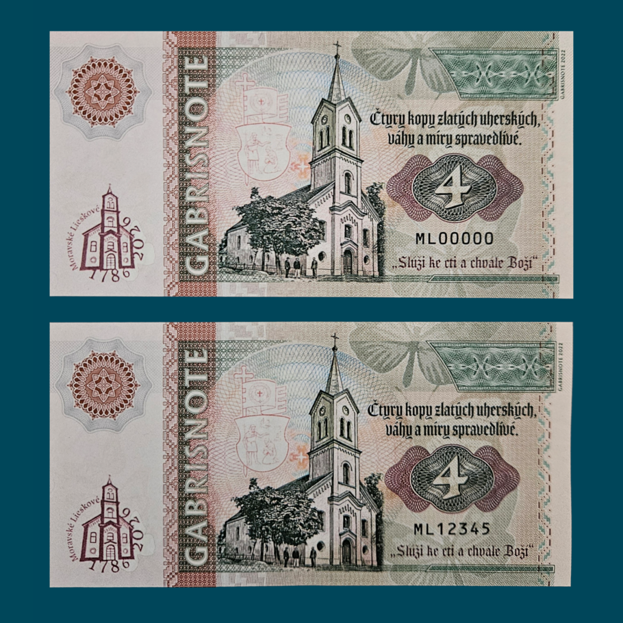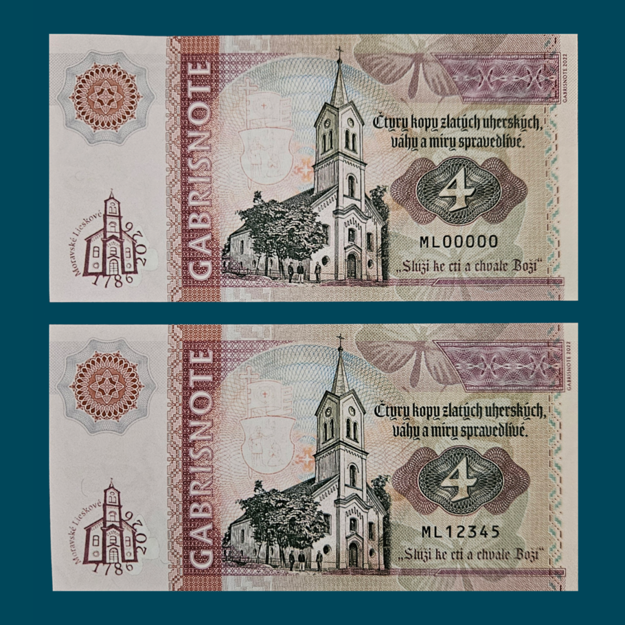 4 kopy zlatých Uherských Spomínate si na 100 -ku s Martinom Rázusom z roku 2024? Teraz na ňu priamo nadväzuje privátna emisia pri príležitosti 240. výročia ev. kostola v Moravskom Lieskovom. Bude slúžiť ako poďakovanie za podporu udržiavania sakrálneho objektu, miestnych kultúrnych pamiatok, ale aj všetkých kultúrnych podujatí, ktoré organizuje miestna komunita. Ako napríklad medzinárodná fotografická súťaž Memoriál Jozefa Hollého, eko podujatie Autopôst alebo Pamätnica osobností.