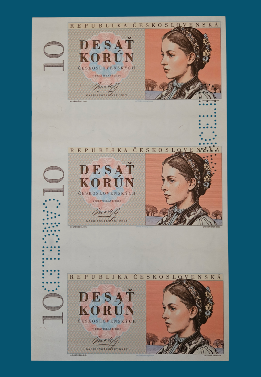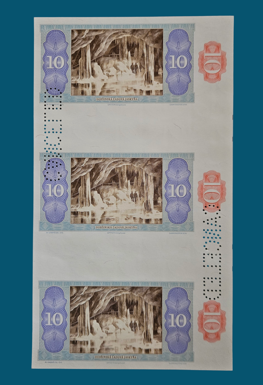 Keď v roku 1949 vyšla bankovka (20 korún československých) navrhnutá Karlom Svolinským, spôsobila v dizajne cenín malú revolúciu. V ére monochromatických emisií priniesla nečakanú farebnú hravosť a poetiku, ktorá nadväzovala na najlepšie tradície Muchu či Švabinského. Rozhodol som sa vzdať hold tomuto velikánovi česko-slovenskej grafiky. Výsledkom môjho snaženia je táto 10-korunáčka, ktorá je oslavou pestrej farebnosti. Averz: Portrét dievčiny je inšpirovaný Svolinského estetikou a ľudovou poetikou. Tentokrát slovenskou. Reverz: Dobšinská ľadová jaskyňa v hnedom pripomínajúca staré pohľadnice. Grafický návrh bol realizovaný v tlačiarni cenín OPTYS. Z môjho pohľadu je unikátny svojou jemnosťou. Mám k nemu zvláštny vzťah.